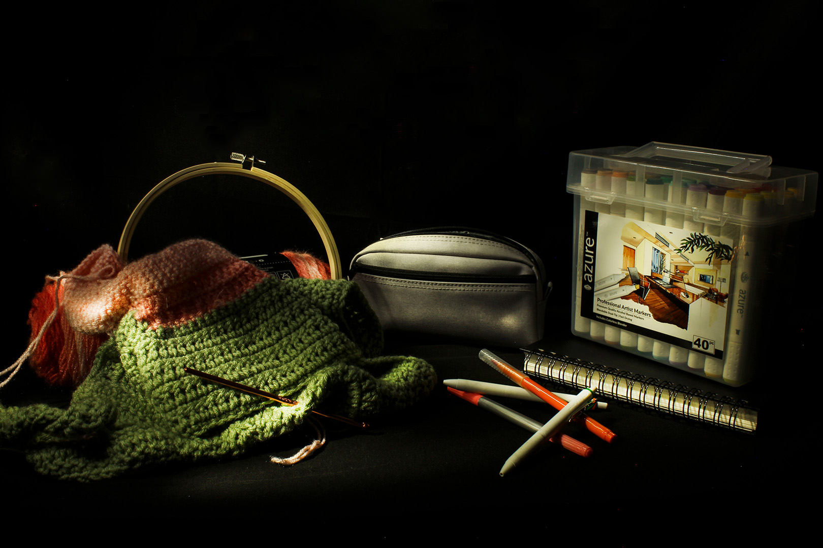 For part of my New Media project I decided to do light painting. I wanted to do something I hadn’t tried before. I did two shots with a normal set up, like I had practiced before and 2 that were macro shots. I was really intrigued to try a macro shot with light painting. It was harder than I thought it would be. I realized that I didn’t need to light the scene as long as I had with my other shots and that I had to get more creative with my stances to get different lighting on my subject. I also realized it was a lot harder to put a scene together than I realized, I think that took up a lot of my time! For those of you wondering, the typical settings for light painting are: F/16, SS 20″, ISO 100, Cloudy WB. Shady and AWB also work, it just depends on the kind of look you’re going for. Here is what I came up with!
